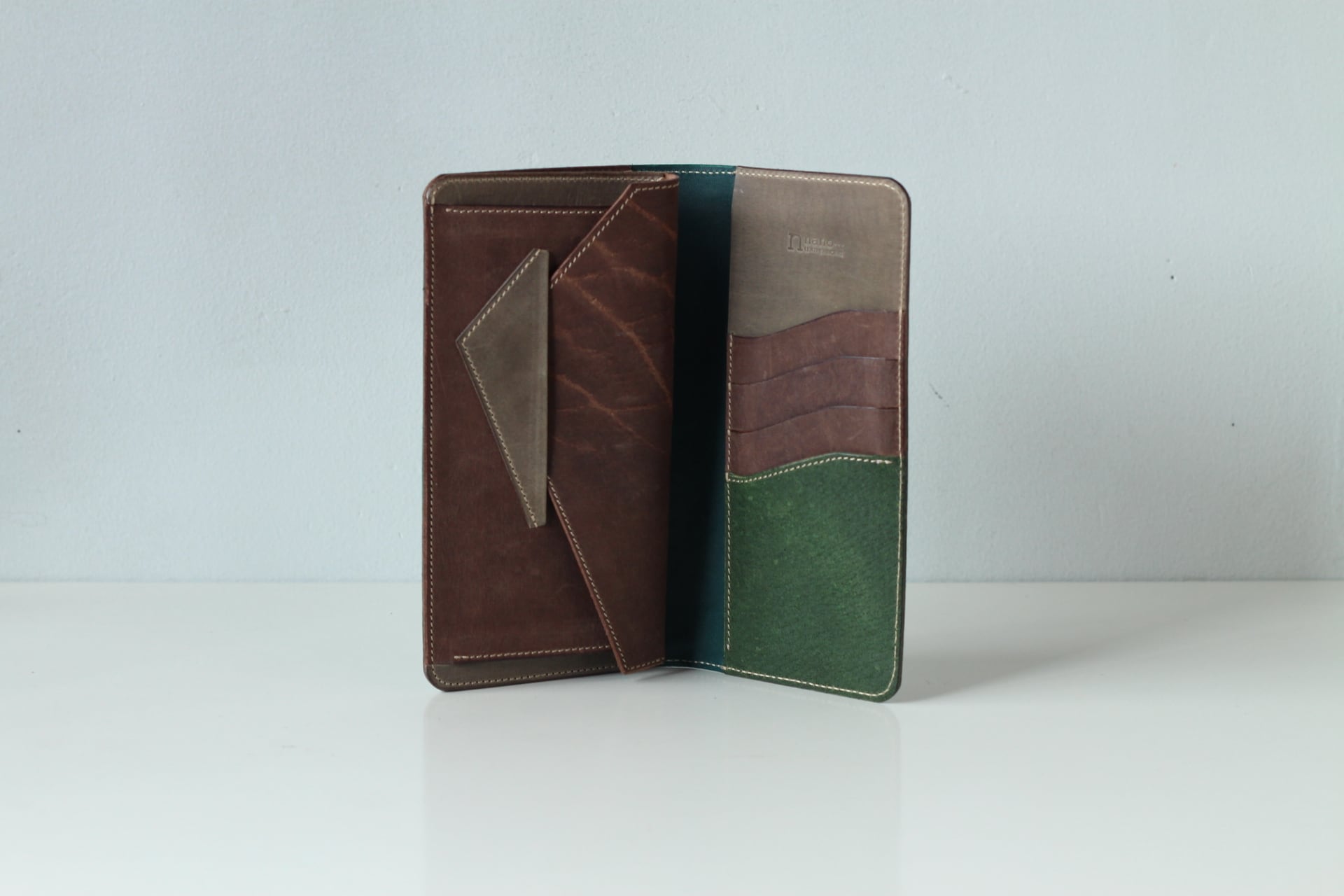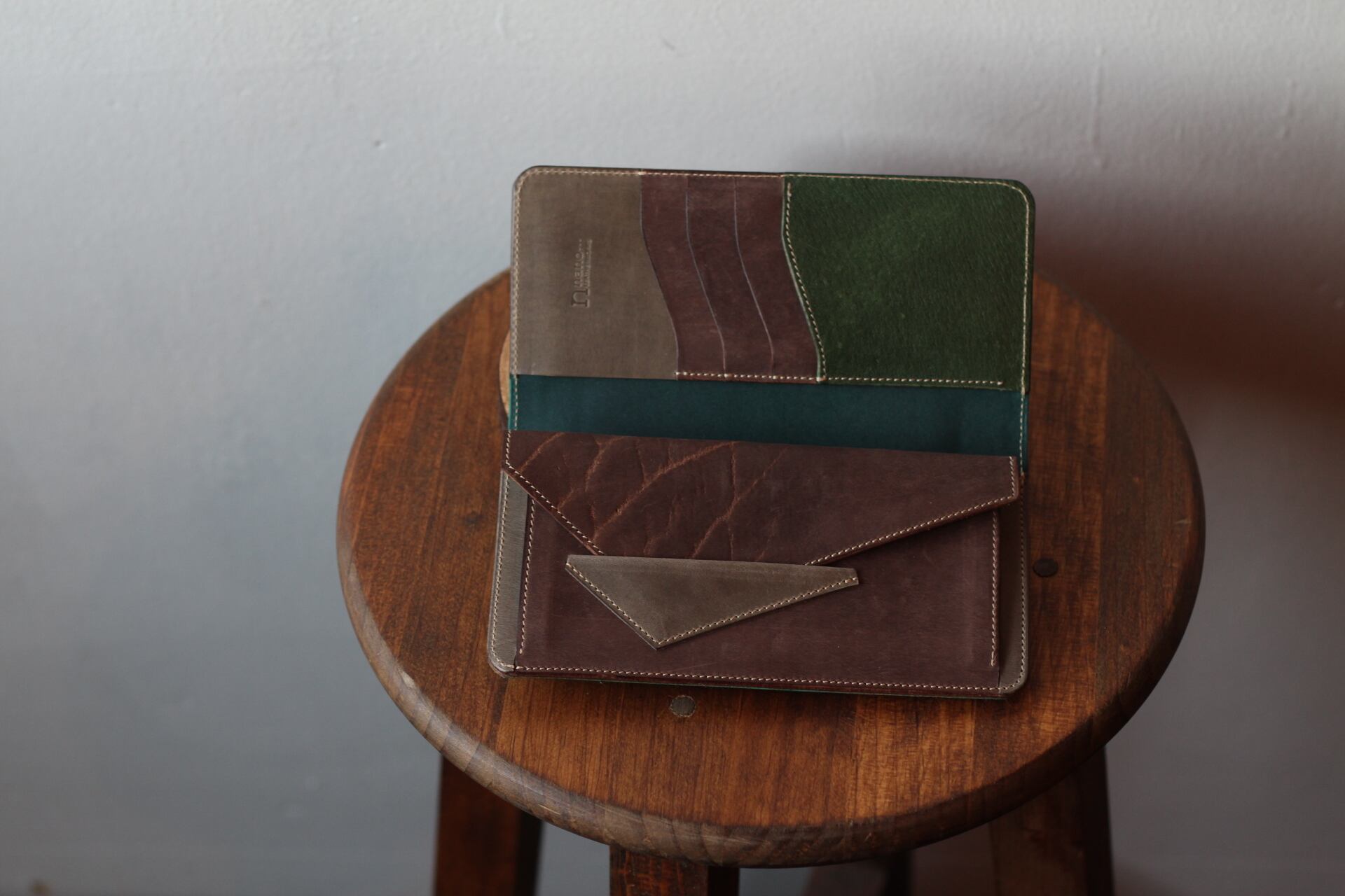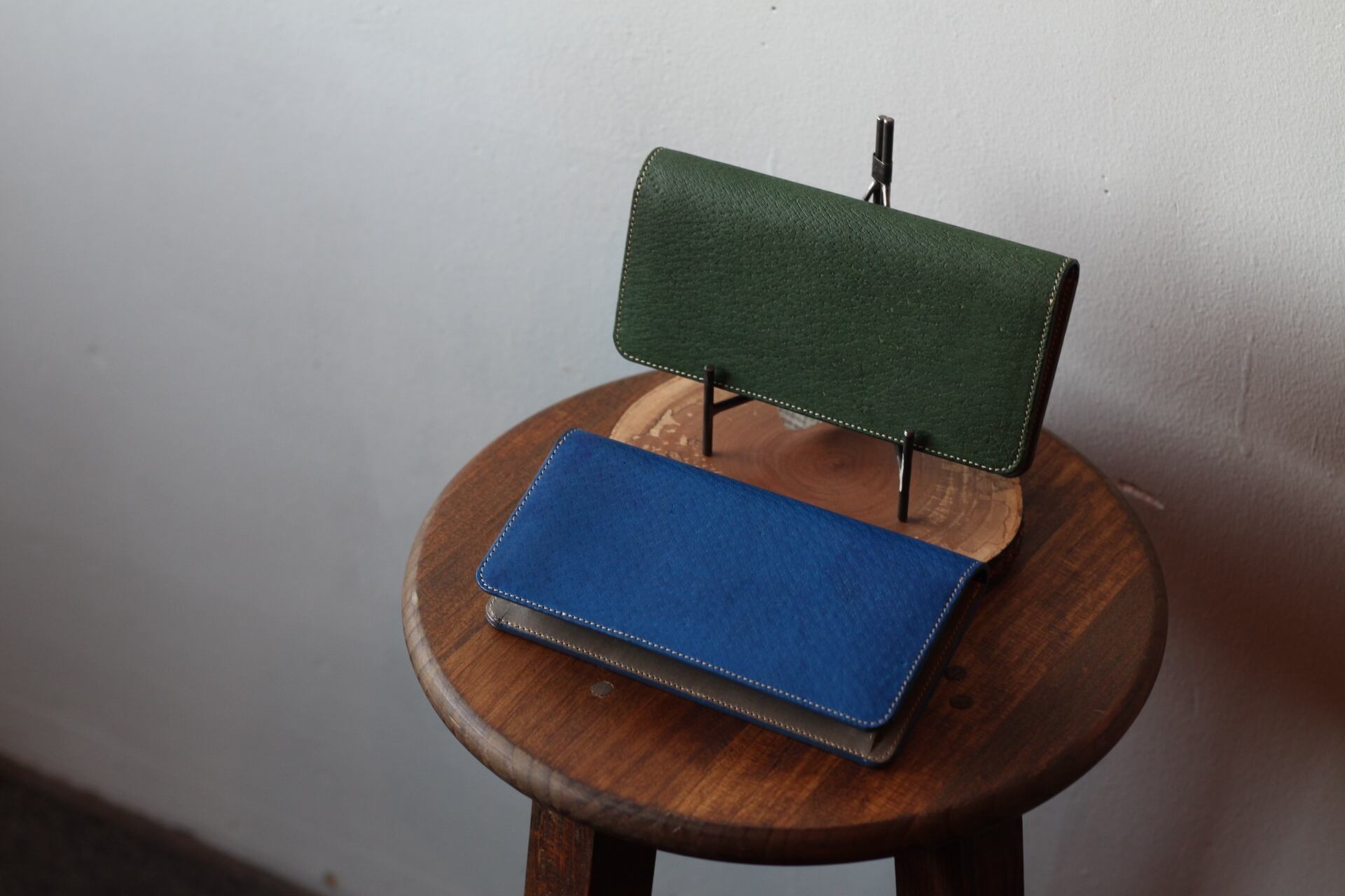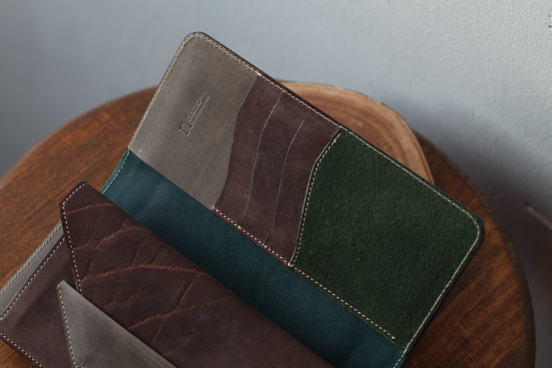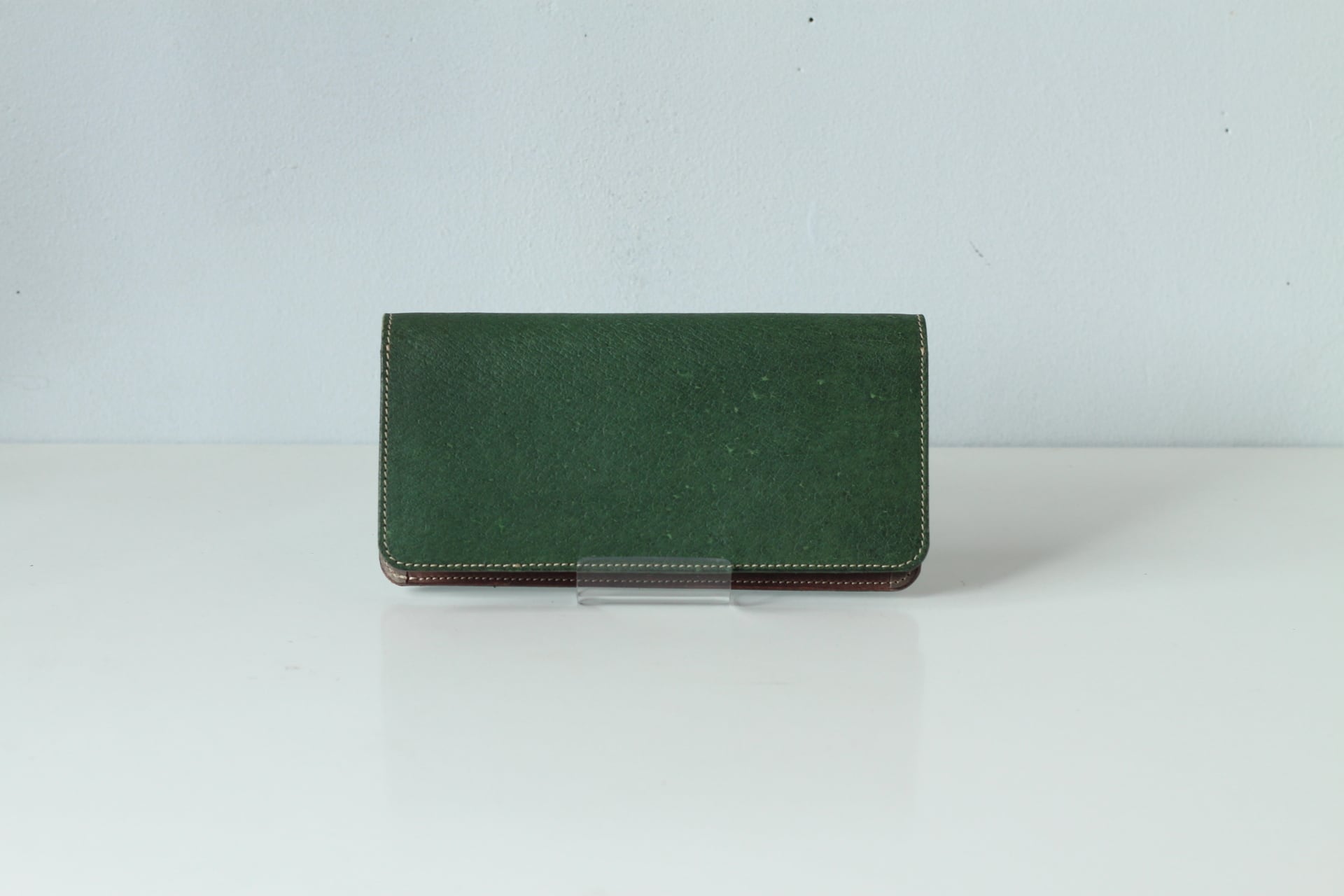 広島の猪レザーを使用したスリムな財布。野生の猪の革は生きていた時の擦り傷などが表面に残っているワイルドな革です。猪レザーは柔らかい為内装には牛革を使用しています。